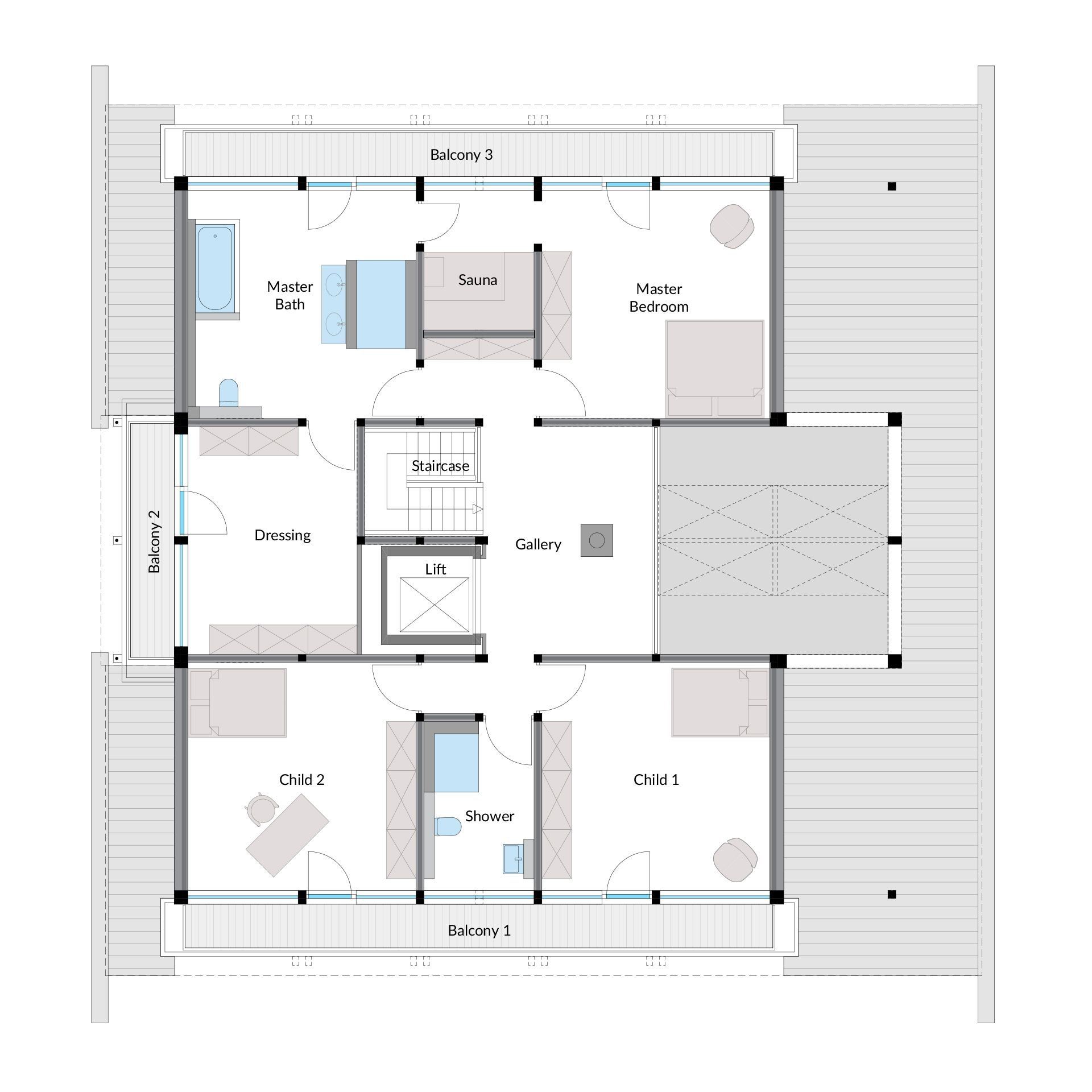 The Atherton House by Baufritz is a luxurious modern prefab home distinguished by its bold angular architecture and extensive use of glazing. Spanning 253.5351 square metres, this two-storey residence comprises five bedrooms and three bathrooms, making it ideal for spacious family living. The design features dramatic overhangs and multiple outdoor living areas, including terraces and balconies, which enhance the connection to nature and provide abundant outdoor space.