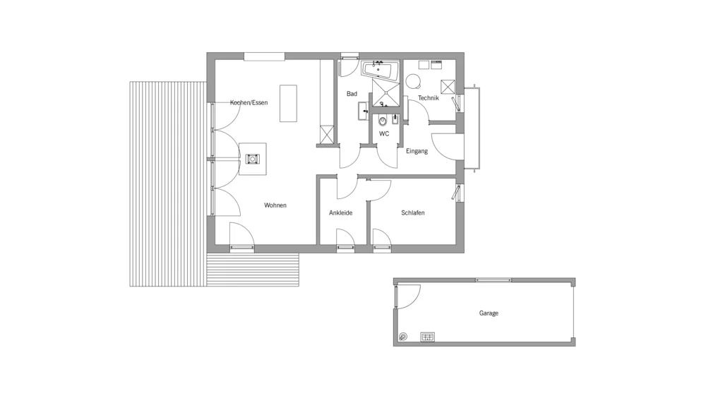 The Mnch house model presents a contemporary take on residential housing, measuring 15.66 x 11.91 metres and providing 186.51 square metres of living space across two levels. It includes four bedrooms, ensuring ample accommodation for families or individuals requiring extra space. Constructed using an ecological timber frame, this model prioritises sustainability, featuring a modern flat roof design and a facade that utilises mixed materials to enhance visual appeal.