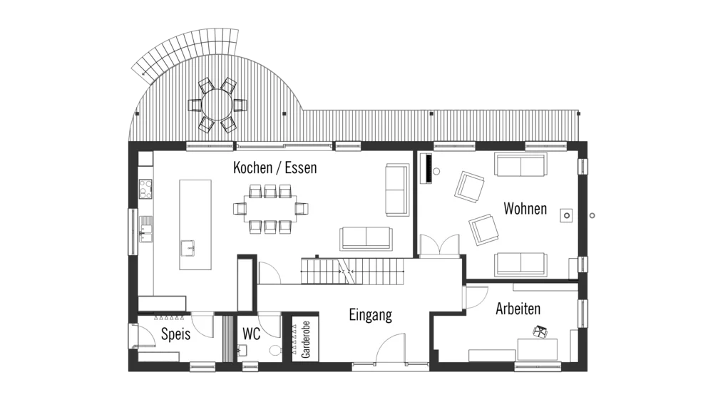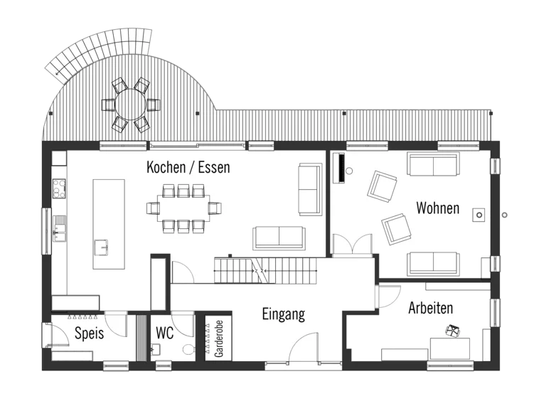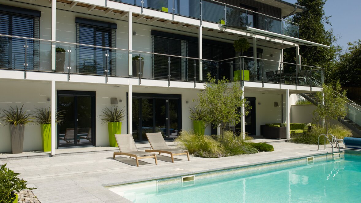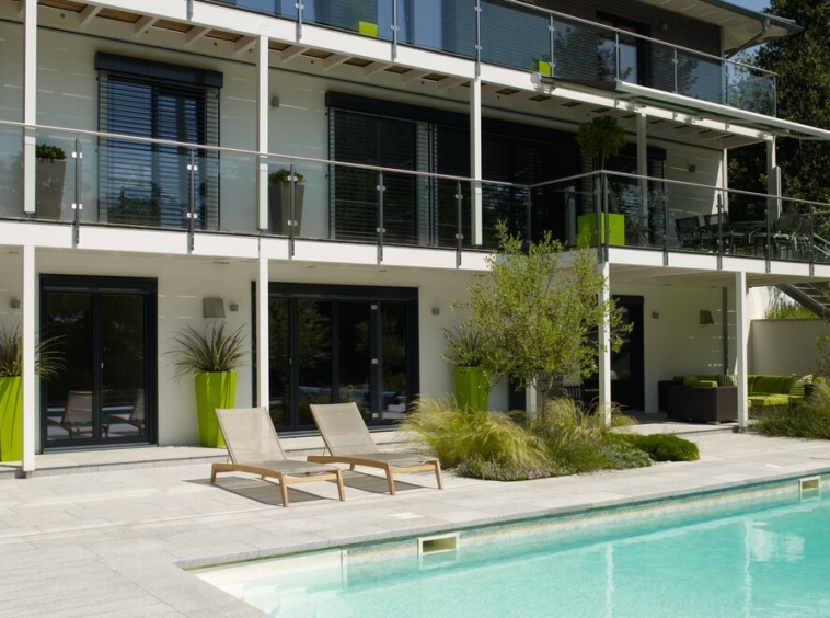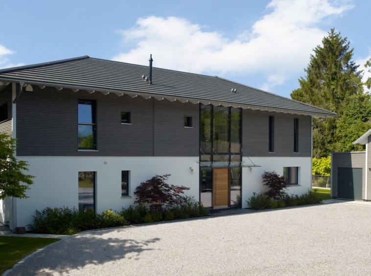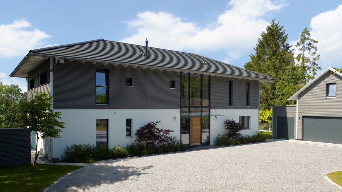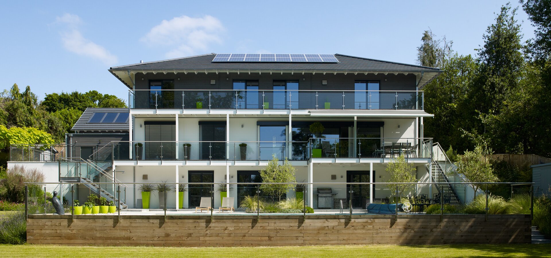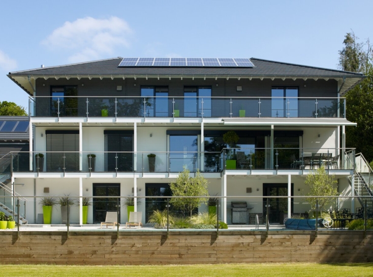 The Modern Living house by Baufritz is a contemporary dwelling that exemplifies Bauhaus architectural design with its flat roof and expansive roof terrace, totalling 140.84 m_ of living space. This model features a meticulously crafted ecological timber frame construction that prioritises sustainability, ensuring a healthy living environment. It includes three bedrooms and three bathrooms, making it suitable for families or individuals valuing spaciousness. The design promotes natural light and an open-plan layout, which enhances the indoor-outdoor connection, fostering a sense of tranquill