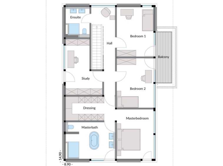 The model showcases energy efficiency through high-performance thermal insulation and a standard installation of triple glazing, contributing to its high energy efficiency rating. The thoughtful design fosters a modern lifestyle, promoting open-plan living and spatial efficiency with flexible spaces that adapt to various needs.
