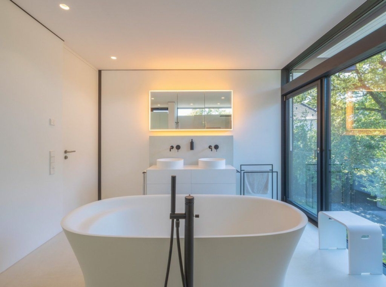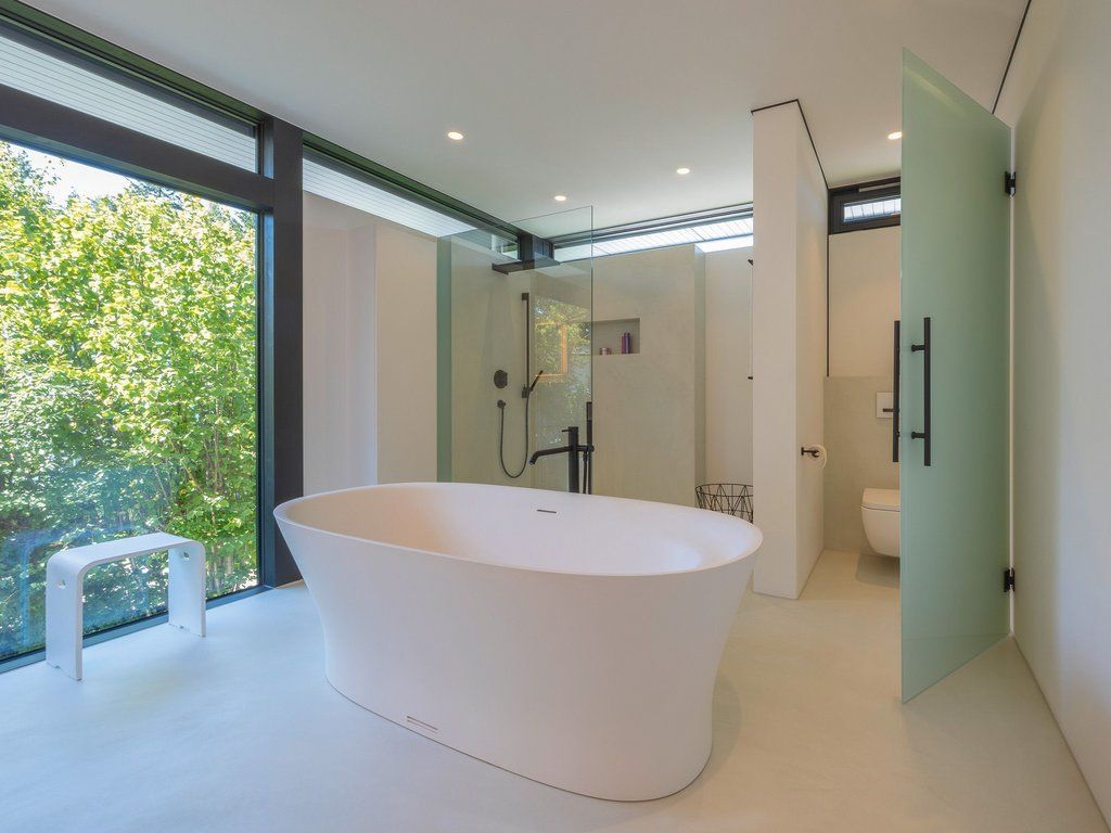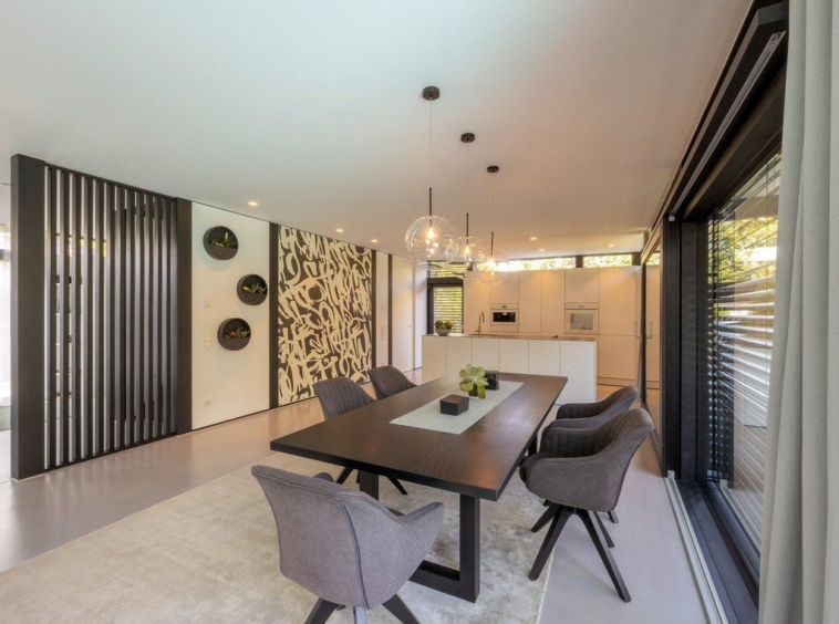We love the extensive glazing that fills the interiors with light, creating a seamless connection between indoor and outdoor spaces for a harmonious living experience.