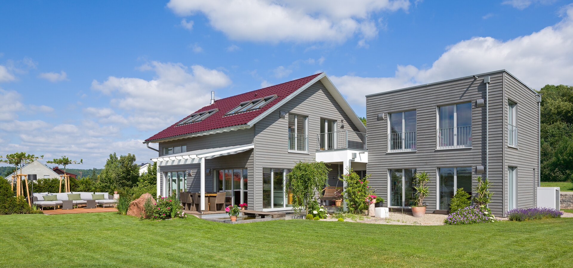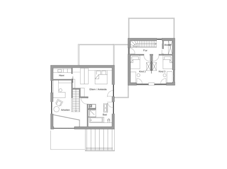 This model is built with Baufritz's signature materials, such as wood shaving insulation and energy-efficient windows, ensuring a comfortable living environment with minimal ecological impact. Additional modern amenities, including advanced home automation systems and eco-friendly water heating, reflect the latest in sustainable technology and modern conveniences.